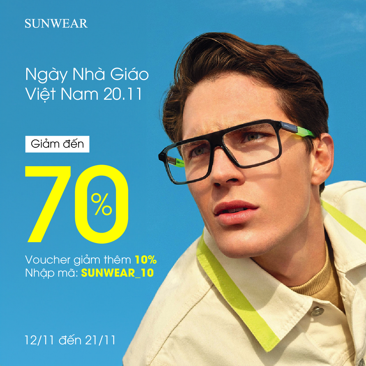 Thành lập năm 2020 tại Việt Nam, SUNWEAR là hệ thống phân phối kính mắt chính hãng từ các thương hiệu nổi tiếng toàn cầu như Versace, Balenciaga, Burberry, v.v. Với hơn 30 cửa hàng và điểm bán trên toàn quốc, SUNWEAR được tin chọn nhờ sản phẩm chính hãng, dịch vụ chuyên nghiệp và trải nghiệm mua sắm hiện đại.