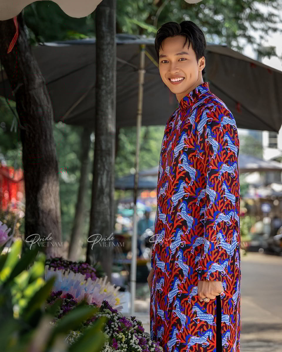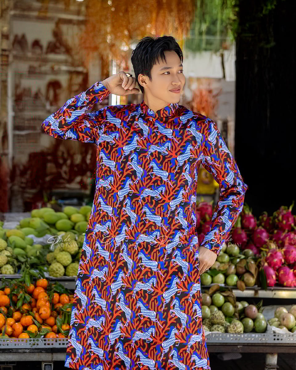 Áo Dài Nam F2 Gấm Xanh Đỏ - Không Kèm Quần