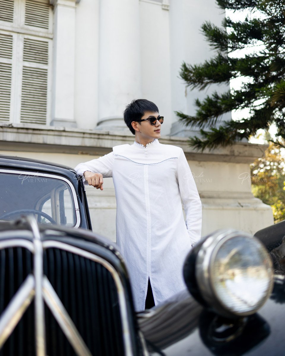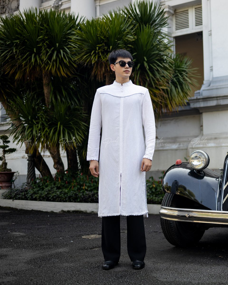 Áo Dài Nam F2 Linen Trắng Đột Chỉ - Không Kèm Quần CHƯƠNG TRÌNH KHUYẾN MÃI