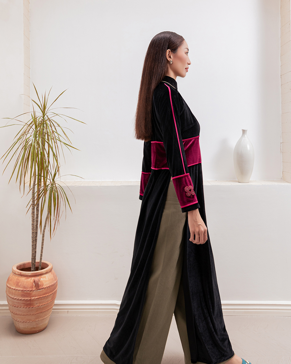 Áo Dài Nữ F2 Nhung Đen Phối - Không Kèm Quần