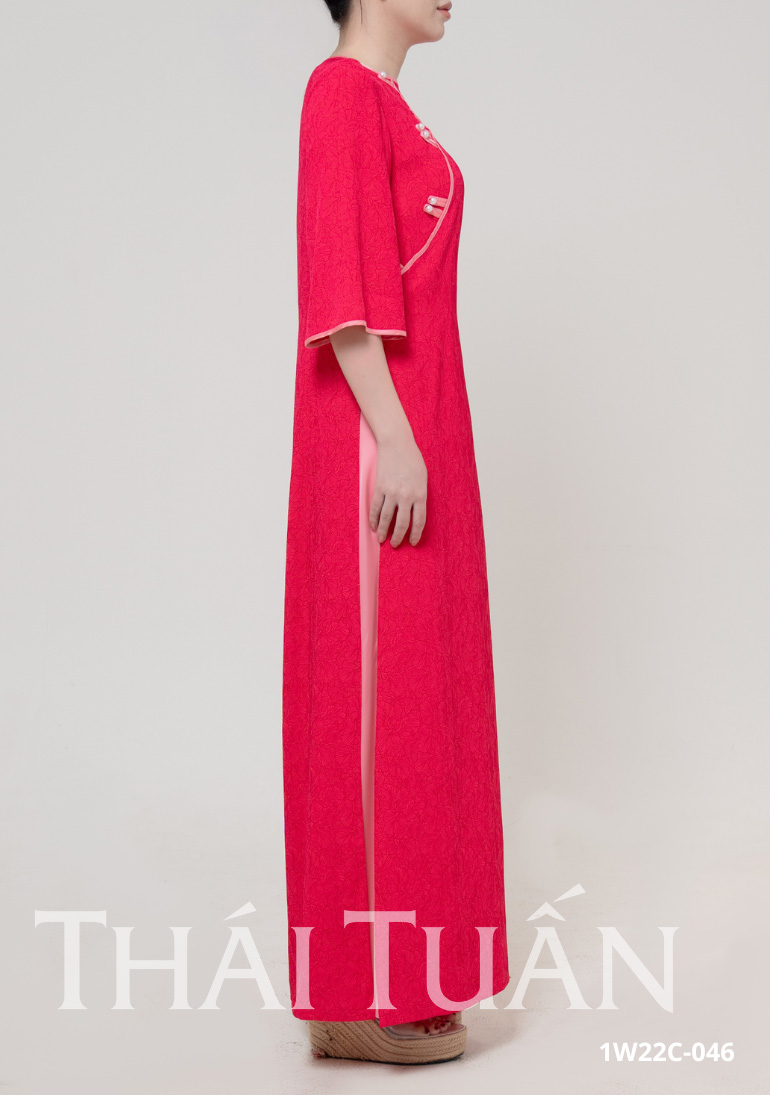 Áo Dài May Sẵn Nữ Tay Lỡ Nút Ngọc Trai Chất Liệu Gấm Màu Hồng Ánh Đỏ Sang Trọng 1W22C026