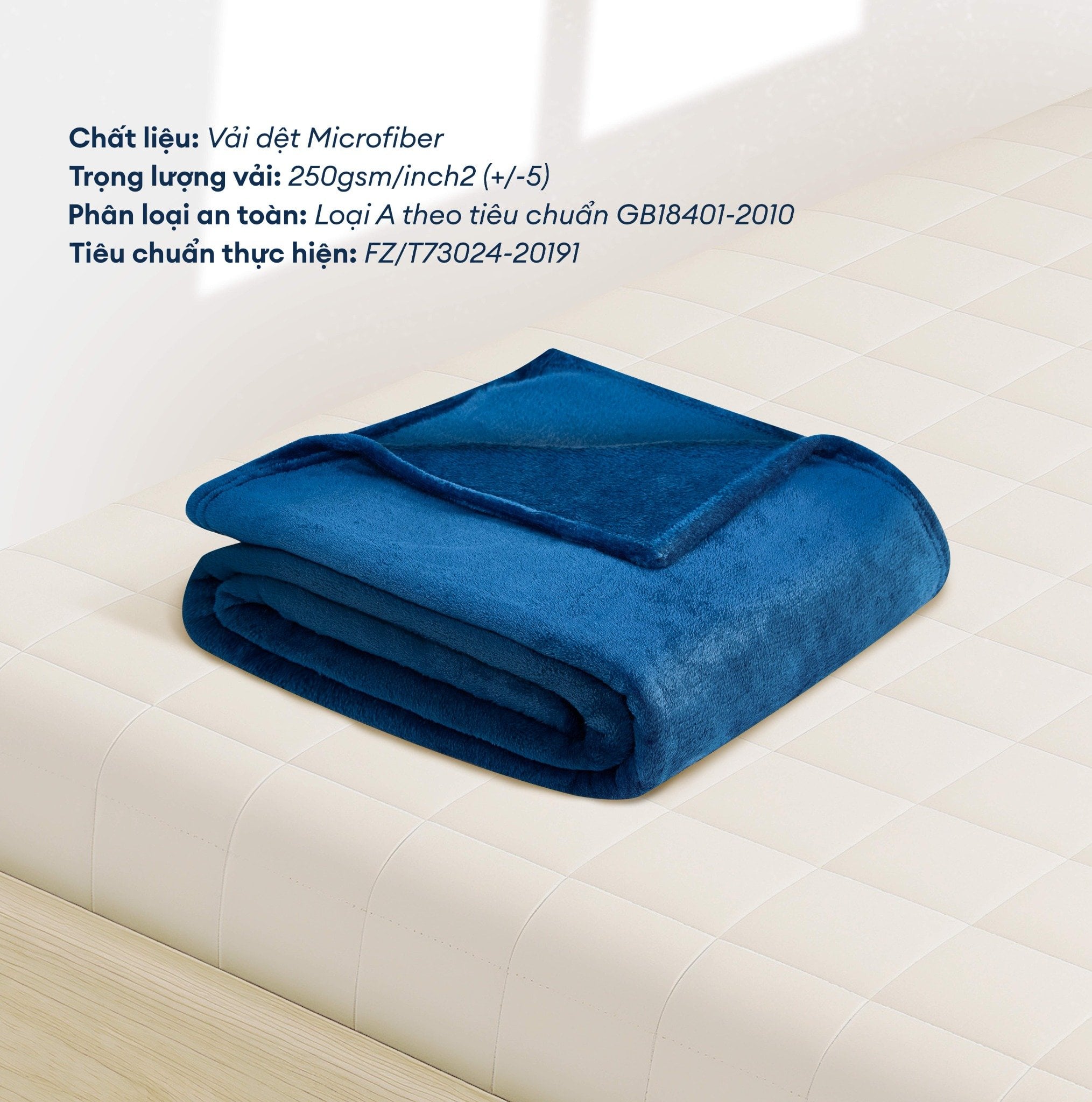 Mền tuyết NIN - Dark Blue là một loại mền mỏng hơn so với các loại chăn thông thường, được làm từ sợi microfiber - một chất liệu nhẹ và mềm mại, giữ ấm tốt. Sợi microfiber là loại sợi nhân tạo với kích thước siêu nhỏ, thường từ 1 đến 5 micron (so với sợi tóc người có đường kính khoảng 100 micron). Sợi microfiber có đặc tính mịn màng và mềm mại, tạo cảm giác thoải mái và êm ái khi tiếp xúc với da.