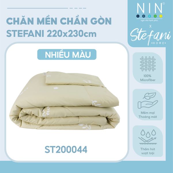 Mền chần bông Microfiber STEFANI được thiết kế tinh tế, với màu sắc trang nhã và đường chần đều đẹp, mang đến sự sang trọng và ấm áp cho không gian nghỉ ngơi. Với kích thước chuẩn 220x230cm, sản phẩm phù hợp cho hầu hết các loại giường gia đình, từ Queen đến King.