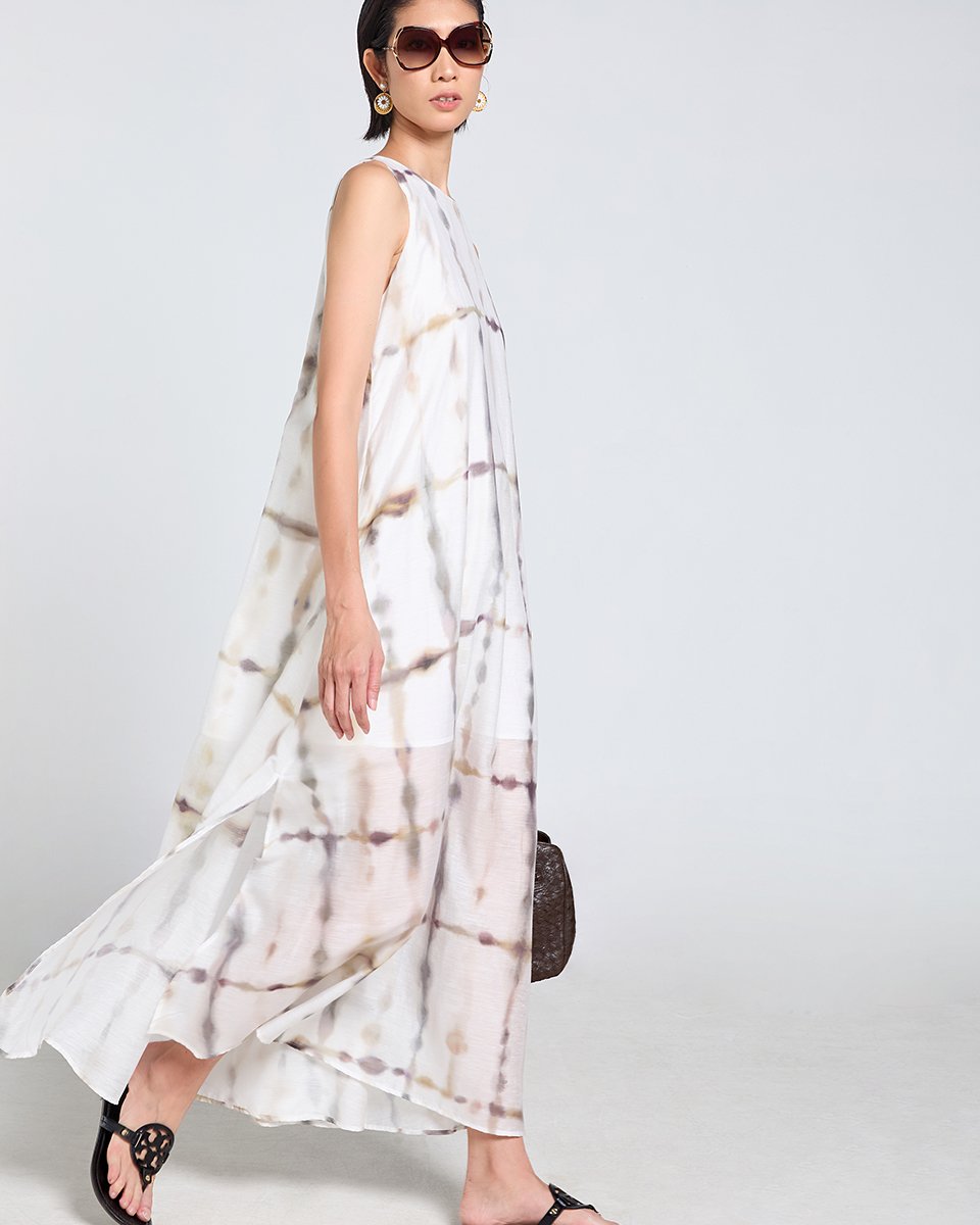 Đầm Lụa Nữ Trắng Họa Tiết Tie-dye Dịu Dàng - Thanh lịch và bay bổng
