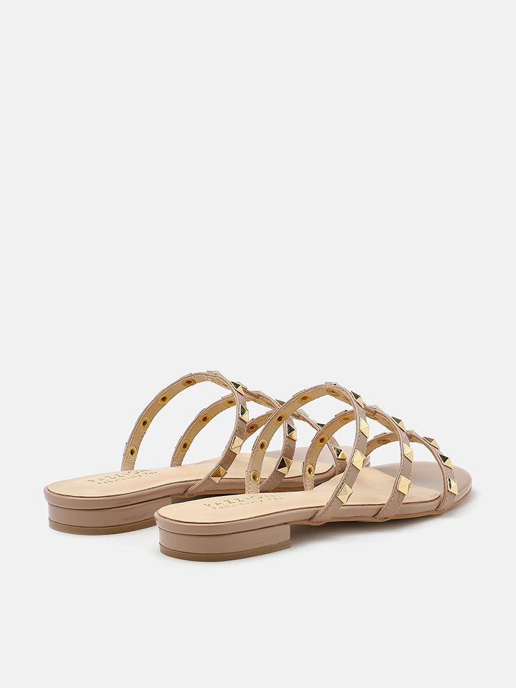 Dép Nữ Pazzion Ingrid Gold Studded Cage Patent Leather Slides
