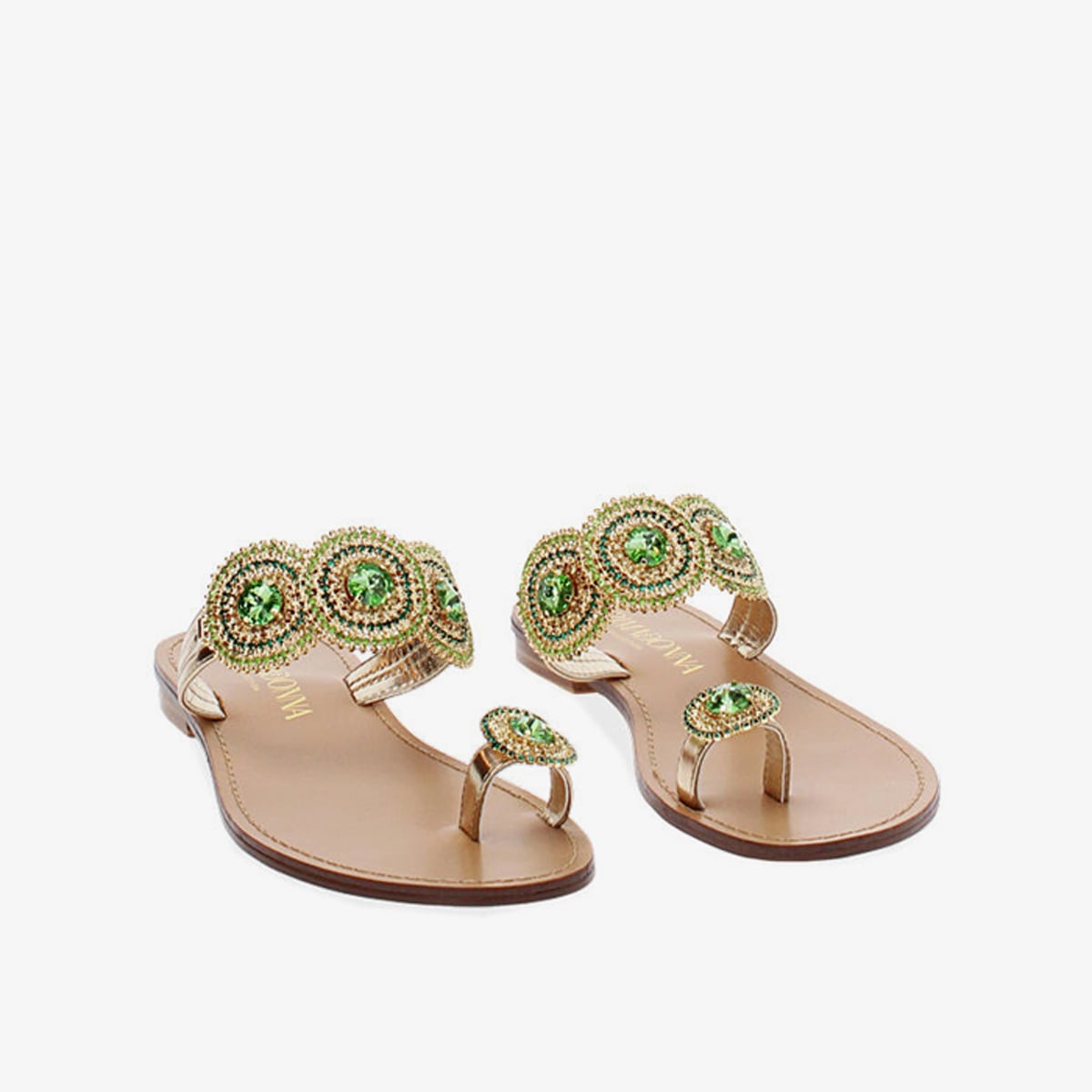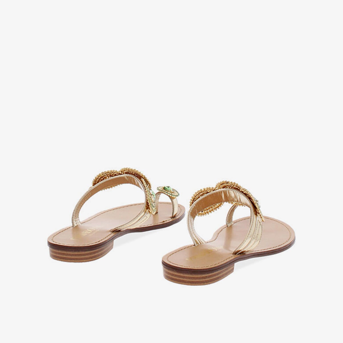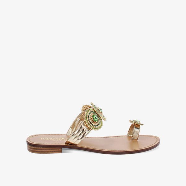 Thiết kế thanh lịch cùng bề mặt phủ ánh kim bóng bẩy của mẫu sandal đế bệt hai tông vàng – xanh từ Primadonna Collection cho phép bạn linh hoạt biến hoá nhiều phong cách, từ casual tinh giản đến thanh lịch sang trọng trong mọi khoảnh khắc của ngày.