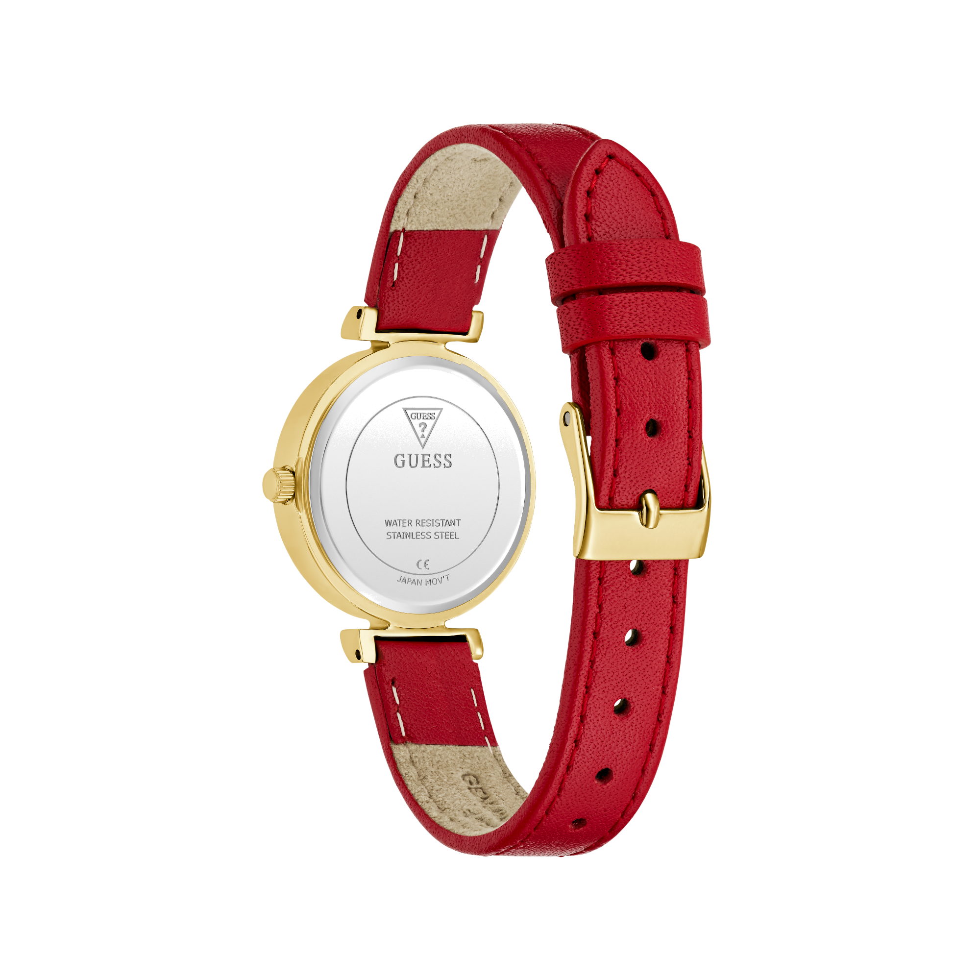 • Dây đeo: Dây đeo bằng da màu đỏ.