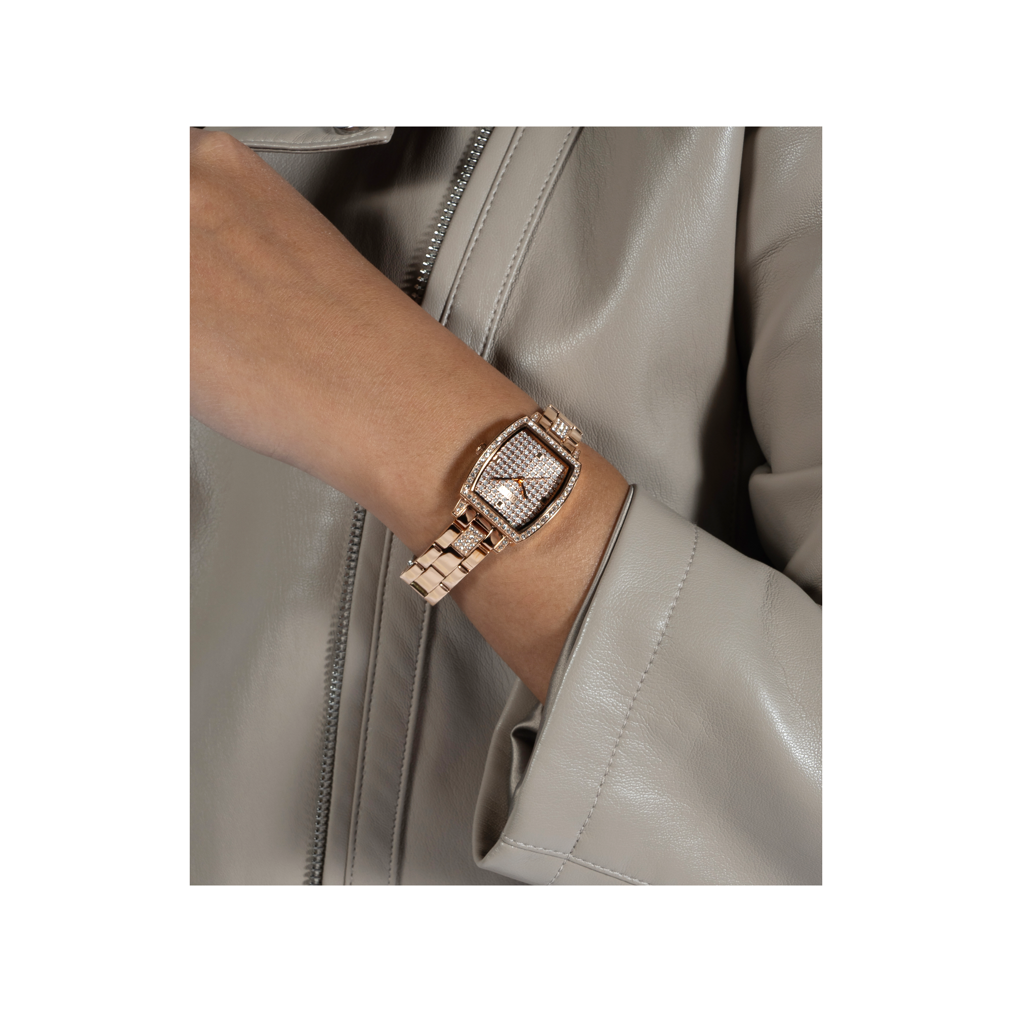 • Viền đồng hồ: Mạ vàng hồng có đá quý.