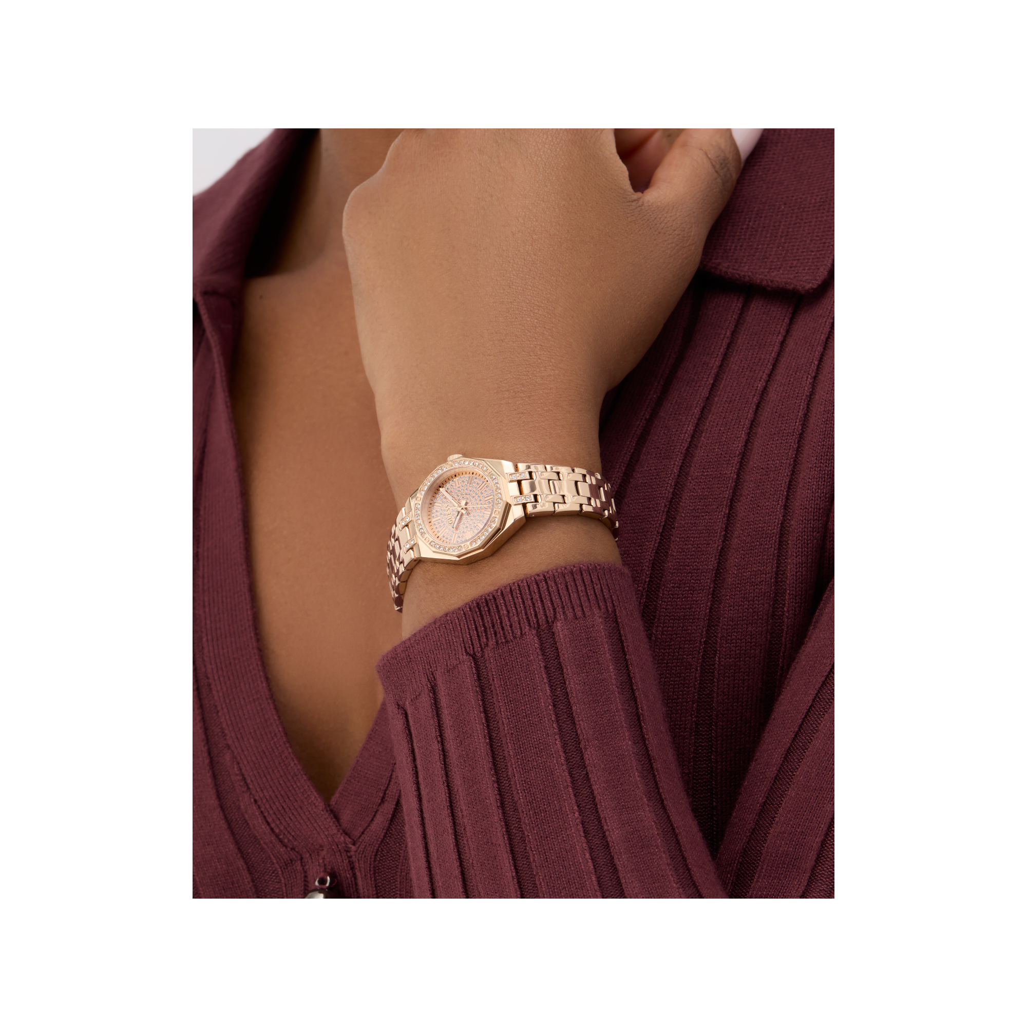 • Dây đeo: Dây đeo thép không gỉ màu vàng hồng.