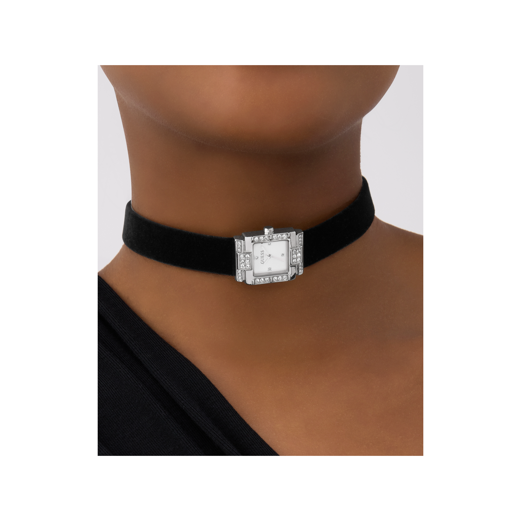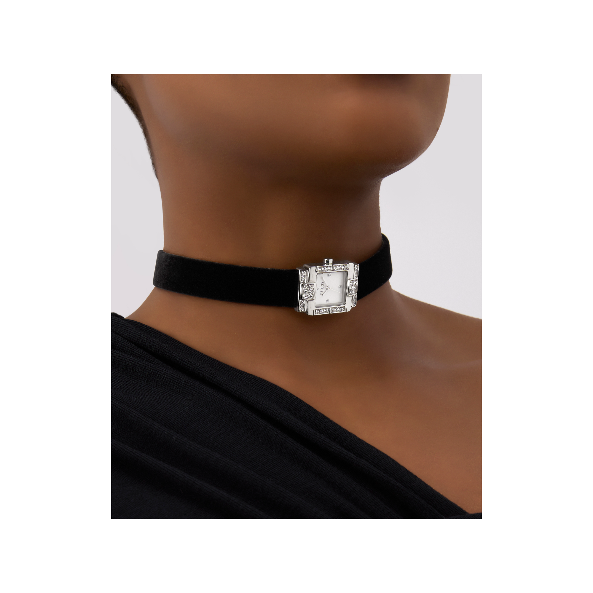 • Dây đeo: Dây đeo bằng da màu đen dạng vòng cổ.