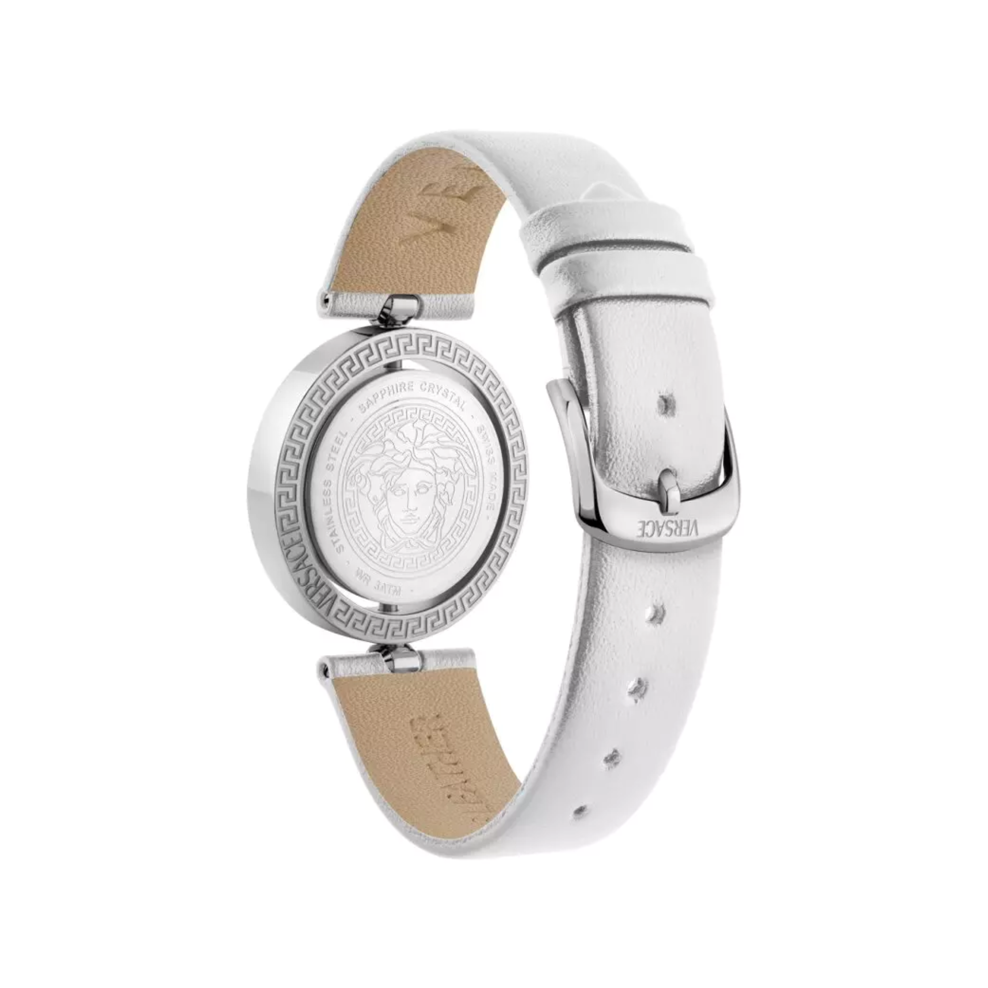 • Dây đeo: Dây da màu trắng.