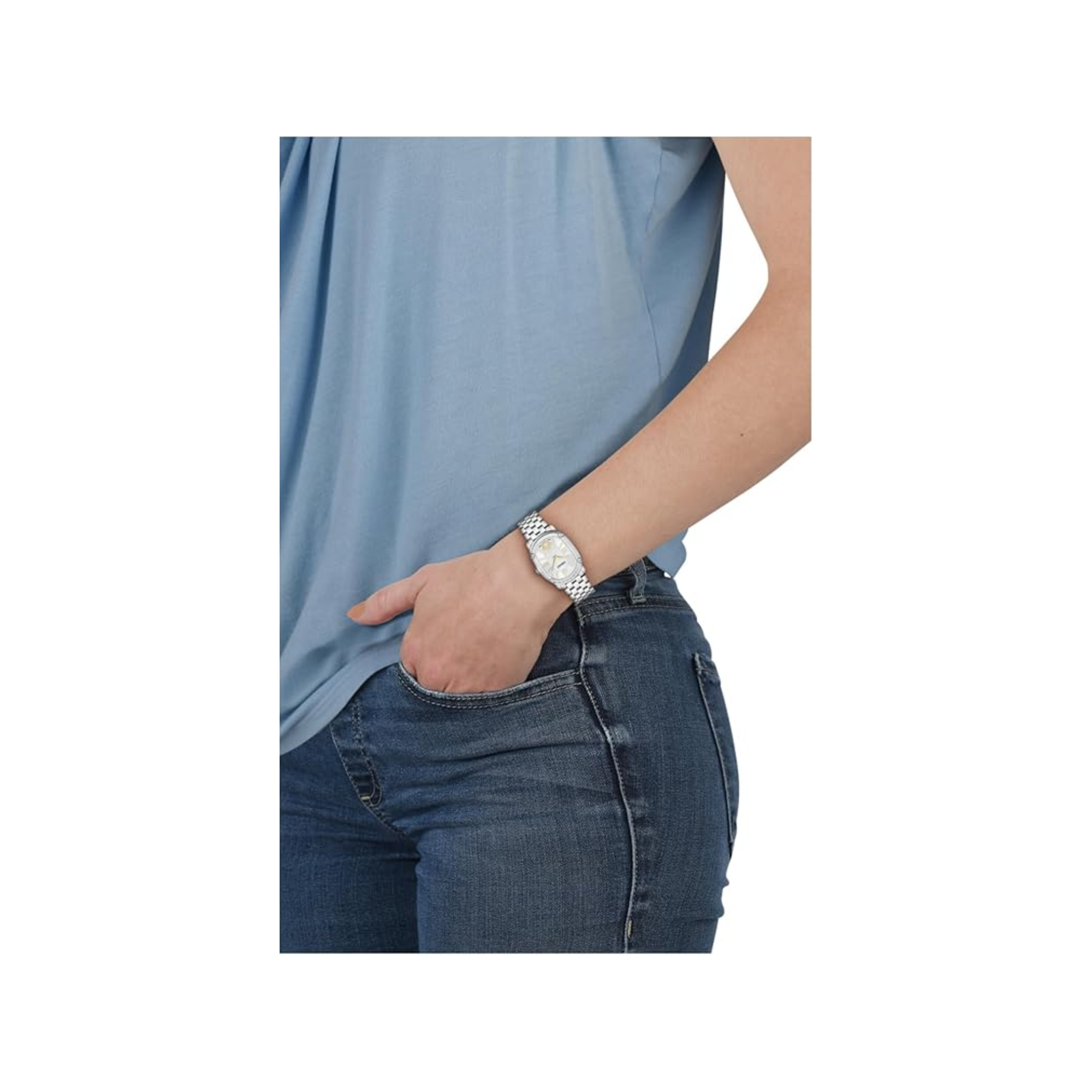 • Dây đeo: Dây đeo thép không gỉ màu bạc.