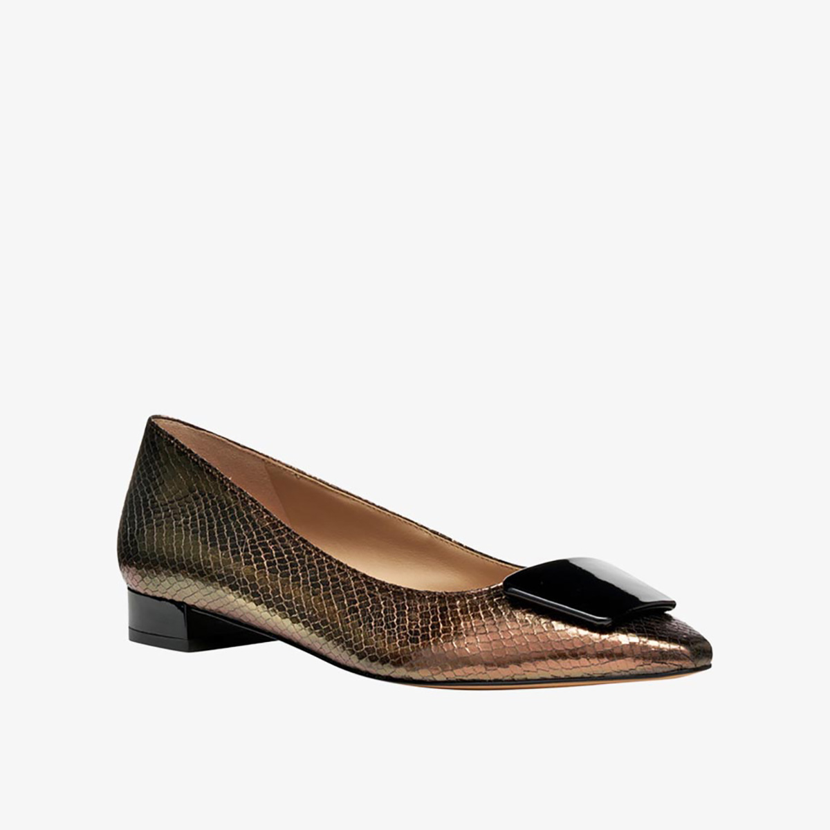 Giày búp bê nữ với thiết kế đương đại, thanh lịch, toát lên cá tính và sức sống. Thân giày được làm từ da metallic trong tông màu nâu đậm – đen sang trọng, kết hợp chi tiết hiệu ứng patent tinh tế. Giselda15 là lựa chọn lý tưởng để chinh phục nhịp sống đô thị hàng ngày, nâng tầm mọi trang phục với nét thanh lịch tinh tế.