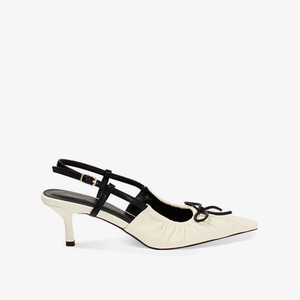 Giày slingback gót nhọn từ Primadonna Collection nổi bật với mũi nhọn thanh thoát, da mềm xếp nhún tinh tế và chi tiết nơ trang nhã trên nền đen cổ điển. Gót cao vừa, dáng mảnh giúp tôn dáng nhẹ nhàng mà vẫn êm ái cho cả ngày dài. Dễ phối cùng quần tây may đo, đầm midi hoặc chân váy thanh lịch cho diện mạo chỉn chu. Phù hợp cho đi làm, tiệc tối hay những dịp đặc biệt – dành cho người phụ nữ tự tin và tinh tế.