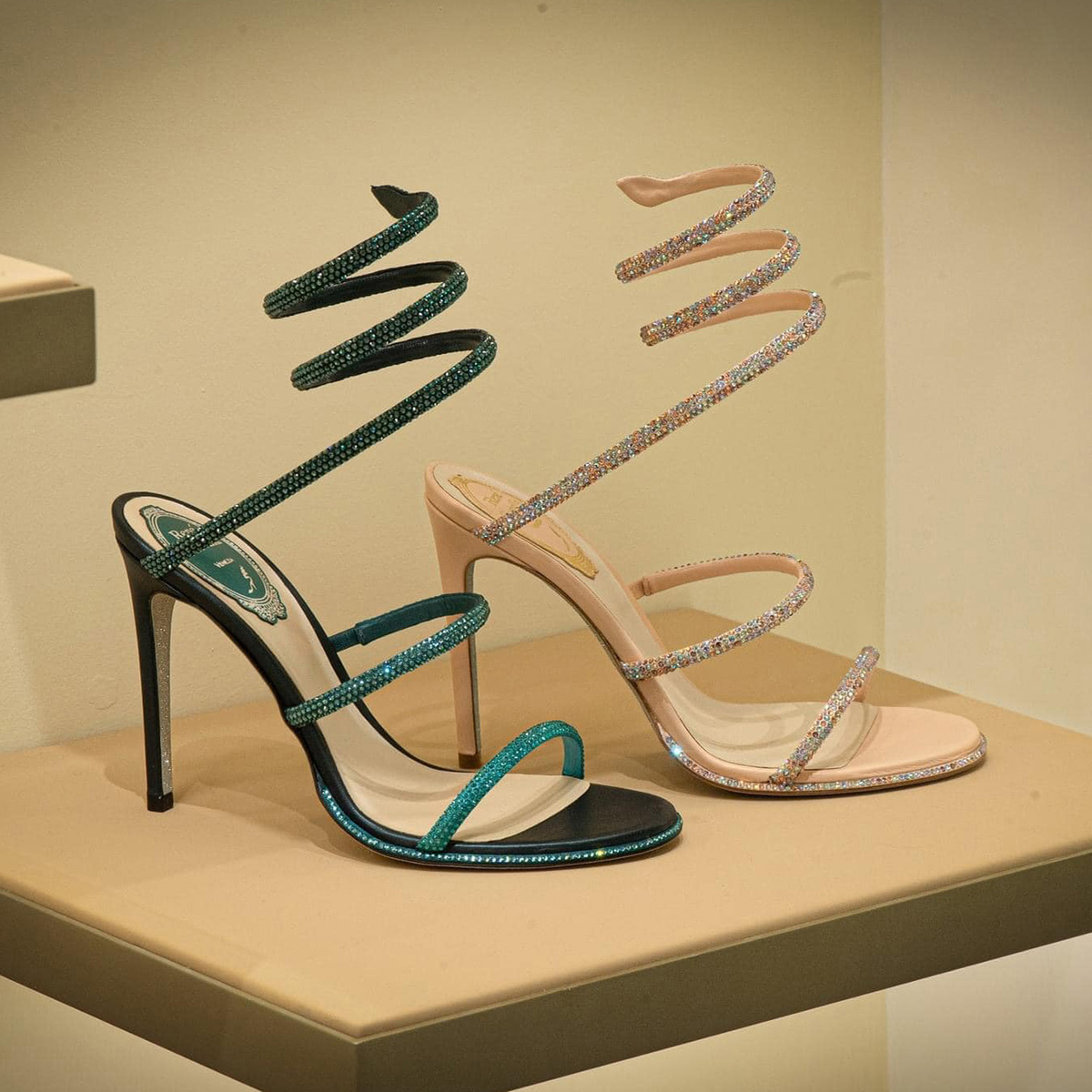 Đôi sandal Cleo là một biểu tượng để mang. Được sản xuất tại Ý, nó có dây đeo mắt cá chân đôi và họa tiết serpente bao quanh tinh tế mắt cá chân và chân, tất cả đều được phủ đá đính. Hoàn thiện với tông màu vàng quý giá, nó có gót nhọn tinh tế và đế giày biểu tượng stardust.