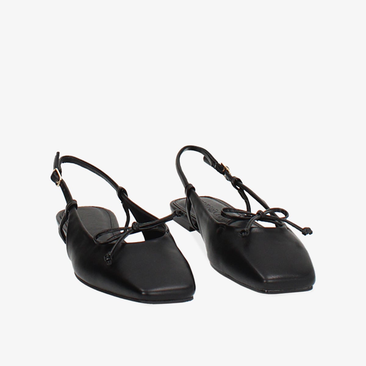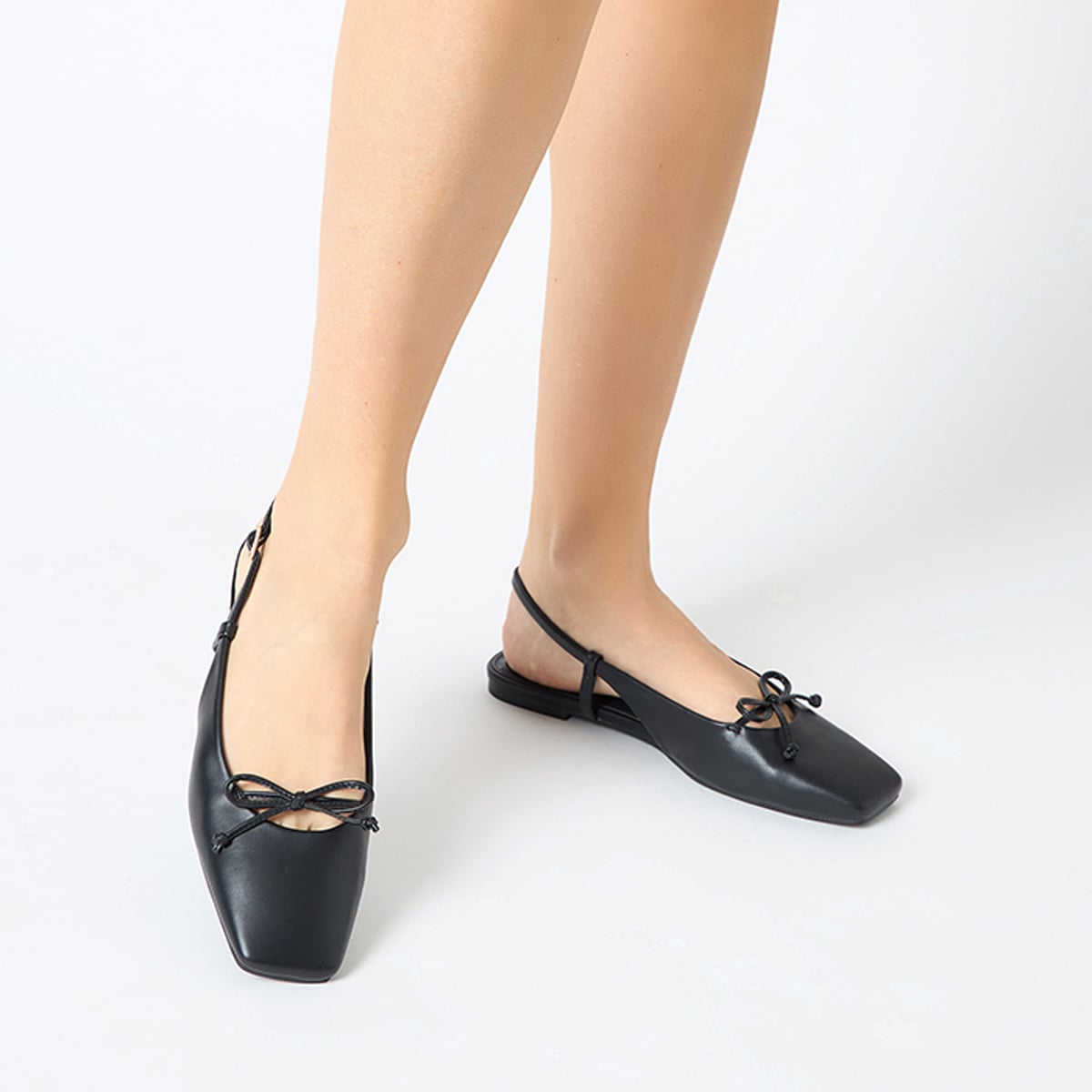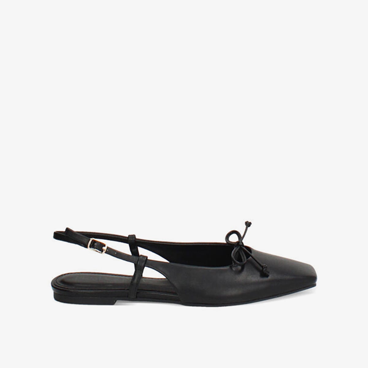 Giày slingback đế bệt từ Primadonna Collection mang thiết kế tối giản với mũi nhọn thanh thoát, bề mặt đen mịn và điểm nhấn nơ nhỏ tinh tế.