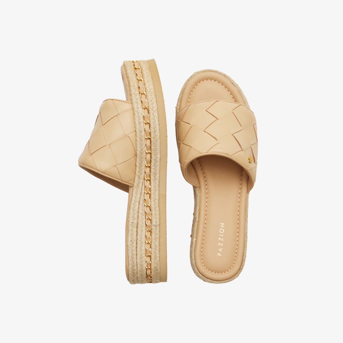 Clare thể hiện vẻ tinh tế kín đáo với phần upper đan tinh xảo, điểm xuyết logo PAZZION sáng bóng tạo dấu ấn biểu tượng hoàn thiện thiết kế. Đôi wedge này sở hữu đế cao su chắc chắn, lót da cừu êm ái và các chi tiết xích da kết hợp với đế đan raffia, mang đến sự thanh lịch tự nhiên cùng hơi thở hiện đại cổ điển.