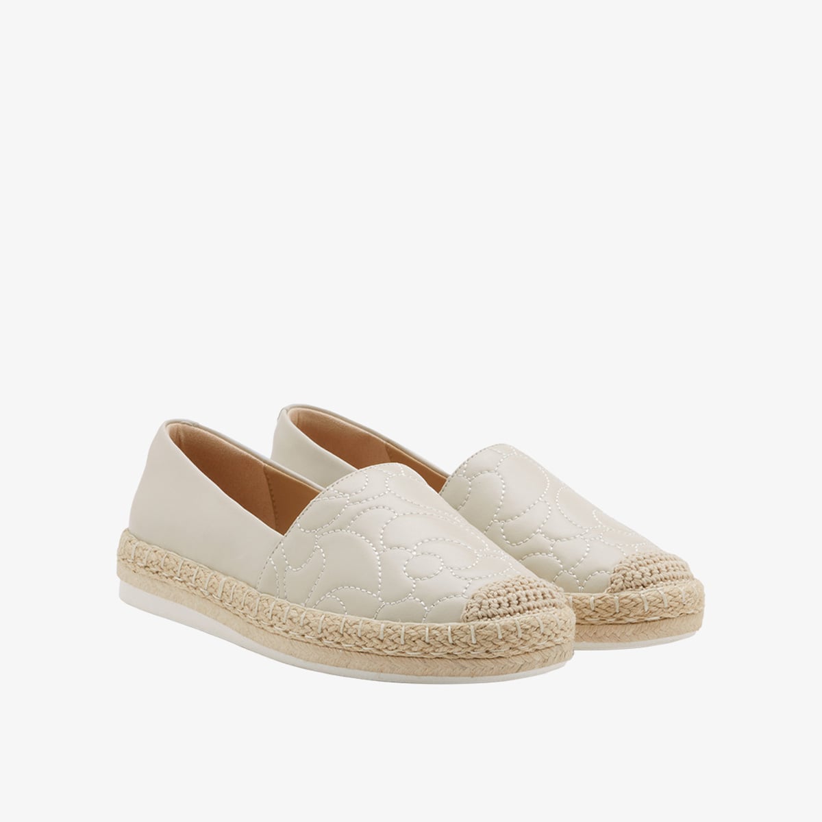 Zuma Quilted Espadrilles là nơi tinh tế tối giản gặp gỡ nghệ thuật chế tác, tạo nên vẻ đẹp thanh nhã mà không cần phô trương. Phần upper được trang trí bằng họa tiết chần bông tinh xảo, gợi cảm giác sang trọng nhẹ nhàng và đầy chiều sâu.