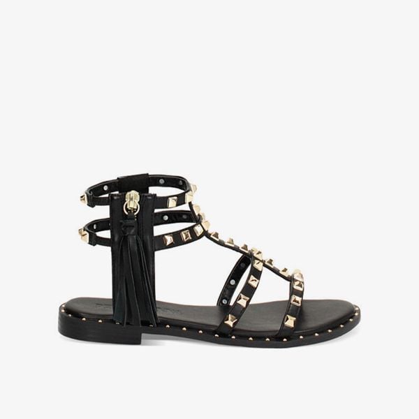 Giải phóng cá tính nổi loạn bên trong bạn cùng đôi sandal gladiator đen cá tính từ Primadonna Collection. Điểm nhấn đinh tán ánh vàng nổi bật kết hợp chi tiết tua rua ấn tượng tạo nên sự giao thoa hoàn hảo giữa phong cách edgy mạnh mẽ và cảm giác thoải mái cho ngày dài.