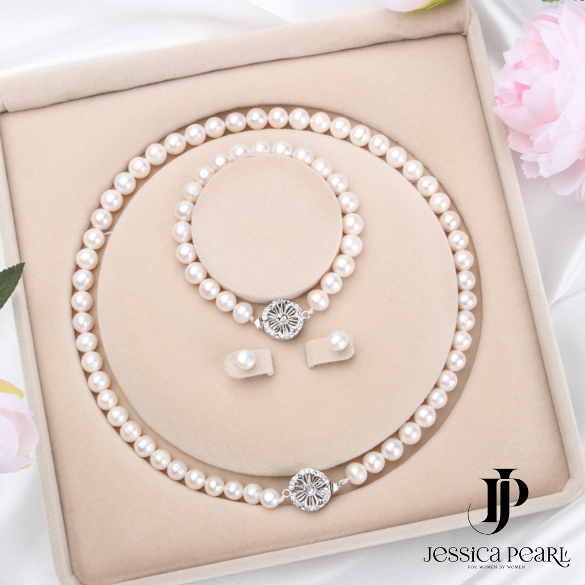 - Chất liệu: Ngọc trai nước ngọt, đá Chalcedony.