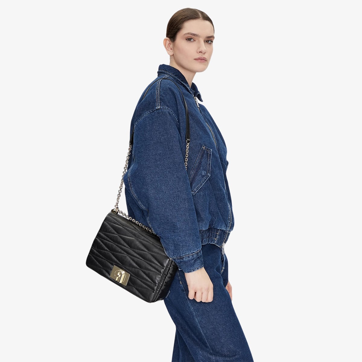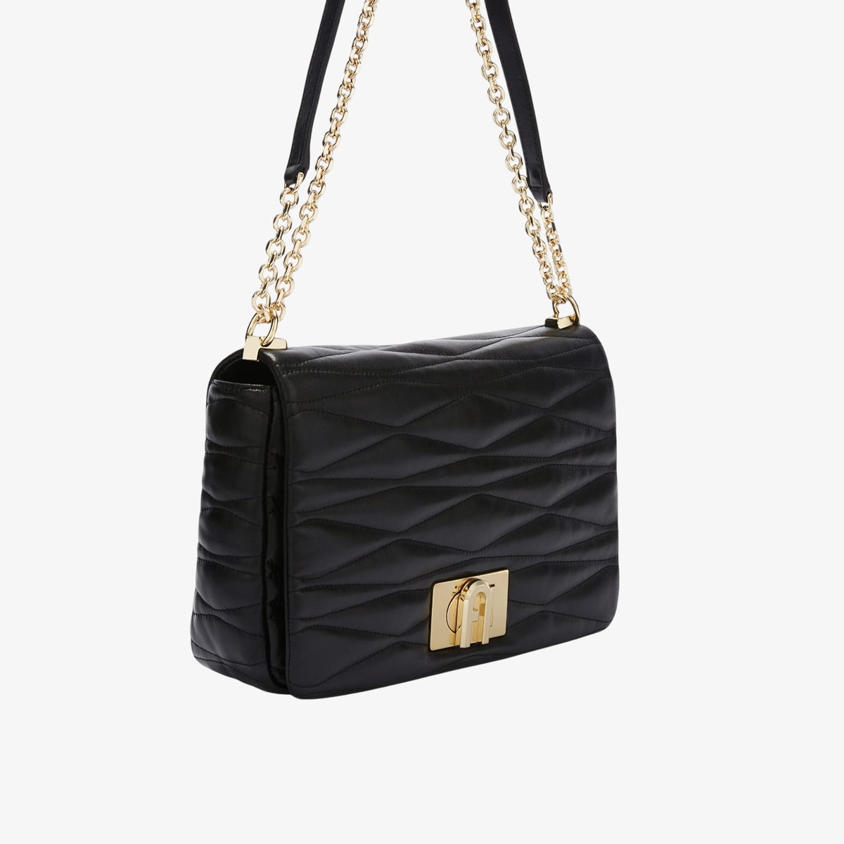 Túi đeo chéo Furla 1927 toát lên vẻ tinh tế với chất liệu da thật mềm mại được dệt tỉ mỉ với họa tiết chần bông quen thuộc. Với độ rộng vừa phải, túi có diện tích đủ để chứa những vật dụng cần thiết. Phom dáng nhỏ gọn được hoàn thiện với quai đeo dây xích kết hợp cùng chi tiết da có thể điều chỉnh, mang đến sự linh hoạt khi có thể đeo chéo hoặc đeo vai. Khóa xoay với logo Arch trứ danh của Furla tạo thêm điểm nhấn sang trọng cho chiếc túi.