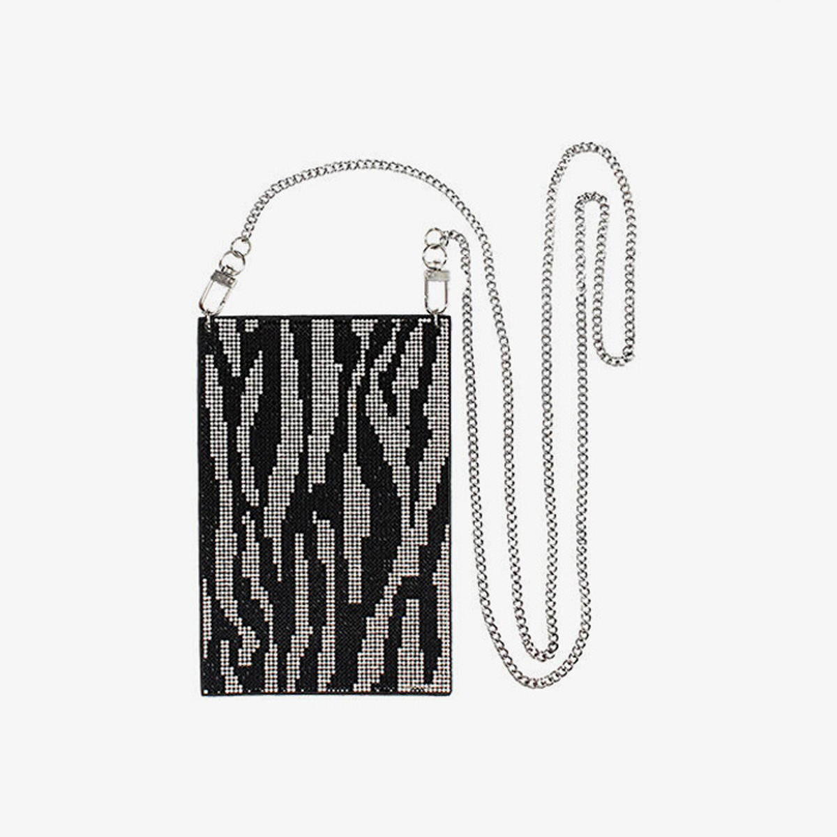 Siêu thời trang với chiếc túi đựng điện thoại mới của Primadonna Collection: được trang bị dây đeo tiện lợi, toàn bộ túi được phủ đầy đá lấp lánh đen và bạc tạo nên họa tiết vằn ngựa bắt mắt. Chiếc túi sẽ thêm một nét sang trọng cho vẻ ngoài của nàng!