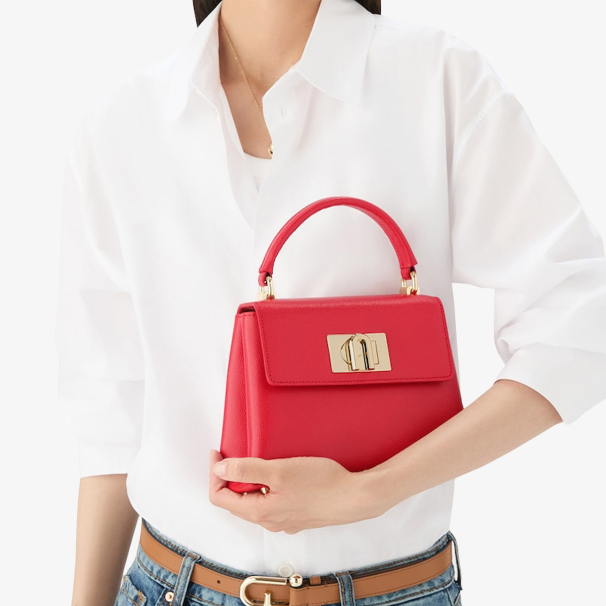 Chiếc Furla 1927 Mini Top Handle có kích thước lý tưởng để mang theo những vật dụng nhỏ cần thiết hằng ngày. Được chế tác từ da cao cấp với bề mặt vân nhẹ tinh tế, thiết kế nổi bật với khóa xoay đặc trưng cùng tab và logo Furla Arch biểu tượng, tạo điểm nhấn thu hút dù bạn xách tay, đeo vai hay đeo chéo.