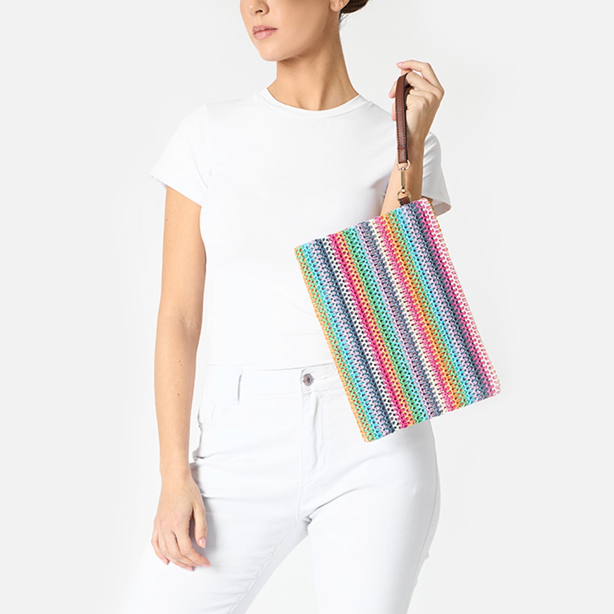 Thiết kế dành cho người phụ nữ yêu thích sự khác biệt, chiếc clutch đa sắc này là lựa chọn hoàn hảo cho những ngày nắng rực rỡ và những buổi tối nhiệt đới đầy gió mát.