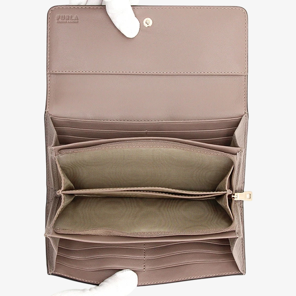 Furla Camelia là một chiếc ví với vẻ ngoài thanh lịch, được chế tác từ da cao cấp. Túi có thiết kế tinh tế với nắp gập và khóa bấm chắc chắn, điểm xuyến logo chữ Arch nhỏ dập nổi phía trước, tạo dấu ấn sang trọng. Với bố cục khoa học cùng nhiều ngăn tiện dụng, đây là chiếc ví lý tưởng để sắp xếp gọn gàng tiền mặt, giấy tờ tùy thân và tiền xu.